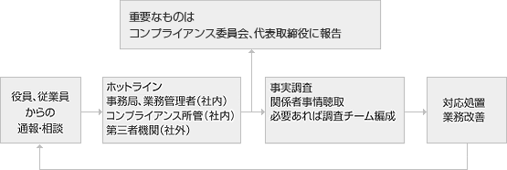 - コンプライアンス違反の疑義ある行為等に関する情報の把握ならびにコンプライアンス関連事象等に関する相談機能
