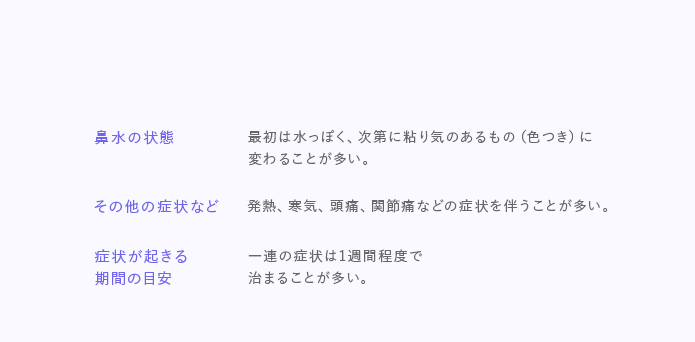 鼻水の原因がかぜの場合、鼻水の症状の他に、以下のような症状や経過も目安になります。