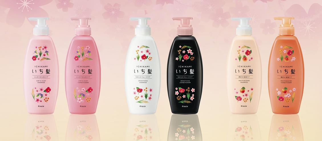 日本女性の髪研究から生まれた“和草のちから”で、「使うたび、傷みにくい髪へ」導く“予防美髪”ケアブランド「いち髪」は、髪のダメージを「補修&予防」する機能を強化して、インバス(シャンプー、コンディショナー、トリートメント)シリーズを、2019年7月に全面リニューアル。また、パッケージも「米」や「しずく」をイメージし、コロンとしたシルエットと和草のイラストを散りばめた「キレかわいい」デザインに一新しました。絡まりやゴワつきがちな髪も指通りなめらかに導く「なめらかスムースケア」、パサつき・広がりが気になる髪もしっとりまとまる「濃密W保湿ケア」、ペタンとしやすい髪もふんわりさらさらな髪に導く「ふんわりさらさらケア」の3ラインを展開しています。