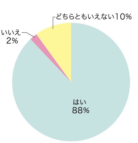 そこで、たんぽぽメンバーの皆さんに「世の中の傾向として、イライラしている人が増えていると感じるか」について聞いてみたところ、なんと88%の方が「はい」と回答。さらに「ご自身は以前と比べてイライラしやすくなったと感じますか」という質問には、54%が「はい」と半分以上の方が回答しています。世の中にイライラが増えていると感じる方が圧倒的に多いことがわかりました。