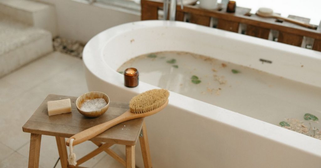 入浴は、就寝する1〜2時間前に入るのがスムーズな入眠には効果的。「頭寒足熱」のところでも触れましたが、人は深部体温が一旦上がってから下がる時に眠りやすいと言われています。寝る1〜2時間前に入浴で体を芯まで温めておくと、寝る時に体温が下がるタイミングが訪れ、寝つきがよくなります。