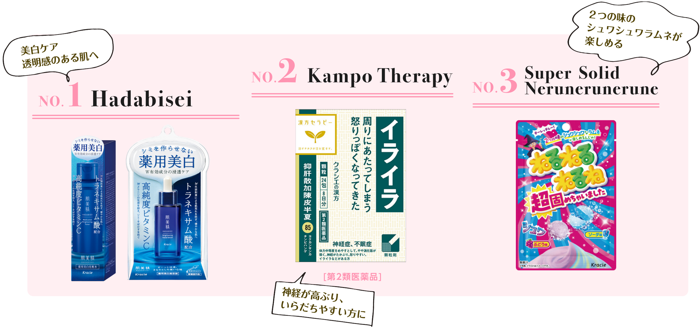 - 機能性美容成分:クリア成分<発酵ローズはちみつ(ソフトピーリング)(グルコノバクター/ハチミツ発酵液)>、くすみケア美容液(保湿)<カーネーション花エキス、ベビーオレンジエキス(ウンシュウミカン果実エキス)、マンダリンオレンジ果皮エキス、ドクダミエキス、セイヨウナシ果汁発酵液、オタネニンジン根エキス、セイヨウネズ果実エキス(2WAYクリアマスクウォッシュのみ)>