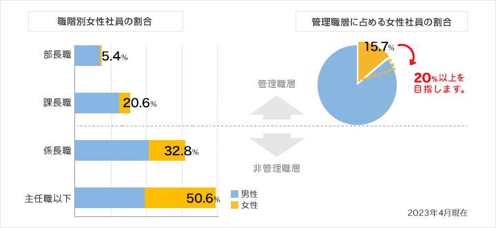 2026年までに、2つの目標を掲げます。 ①管理職に占める女性社員の割合について