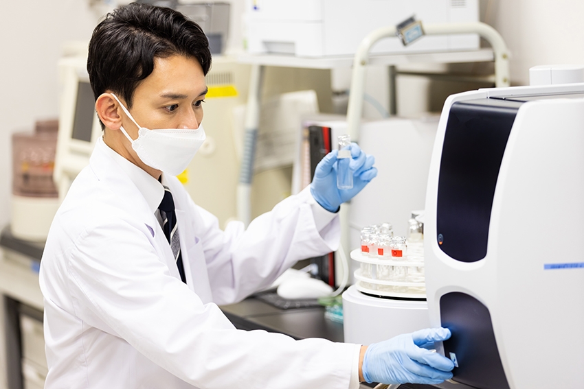 漢方薬の品質向上に欠かせない生薬栽培から薬の有用性の研究、安全リスク対応力強化のための分析技術、品質保証技術の向上、加齢による肌の働き・毛髪の変化や物理的刺激による肌・毛髪の保湿機能への影響などのメカニズムの解明、ユニークな商品アイデアの実現に重要な剤型コントロール技術の開発など、お客さまへよりよい製品をお届けするために研究技術開発に取り組んでいます。