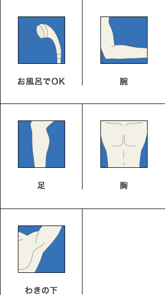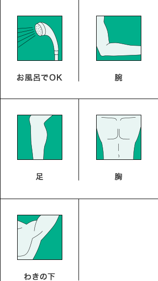 - 除毛する腕・足・胸・わきの下に、傷・はれもの・湿疹・ただれ・その他炎症がある方。