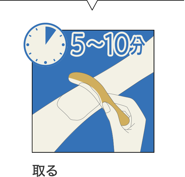 そのまま5〜10分おき、添付のヘラやティッシュなどでこすらないようにクリームを取り除きます。