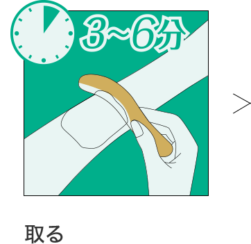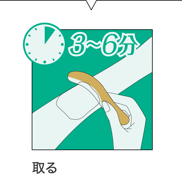 そのまま3〜6分おき、添付のヘラやティッシュなどでこすらないようにクリームを取り除きます。
