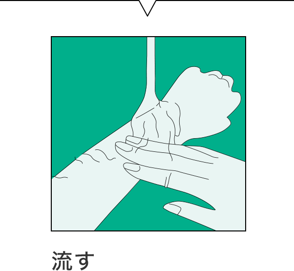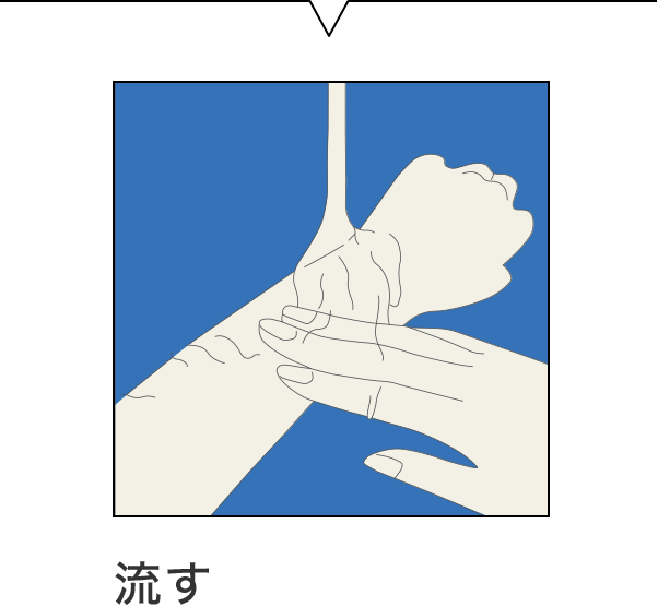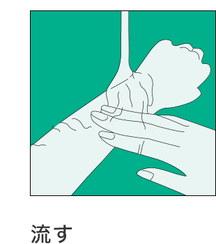 ※洗い流す際、石けん類・ボディブラシなどは肌に刺激となりますので使用しないでください。
