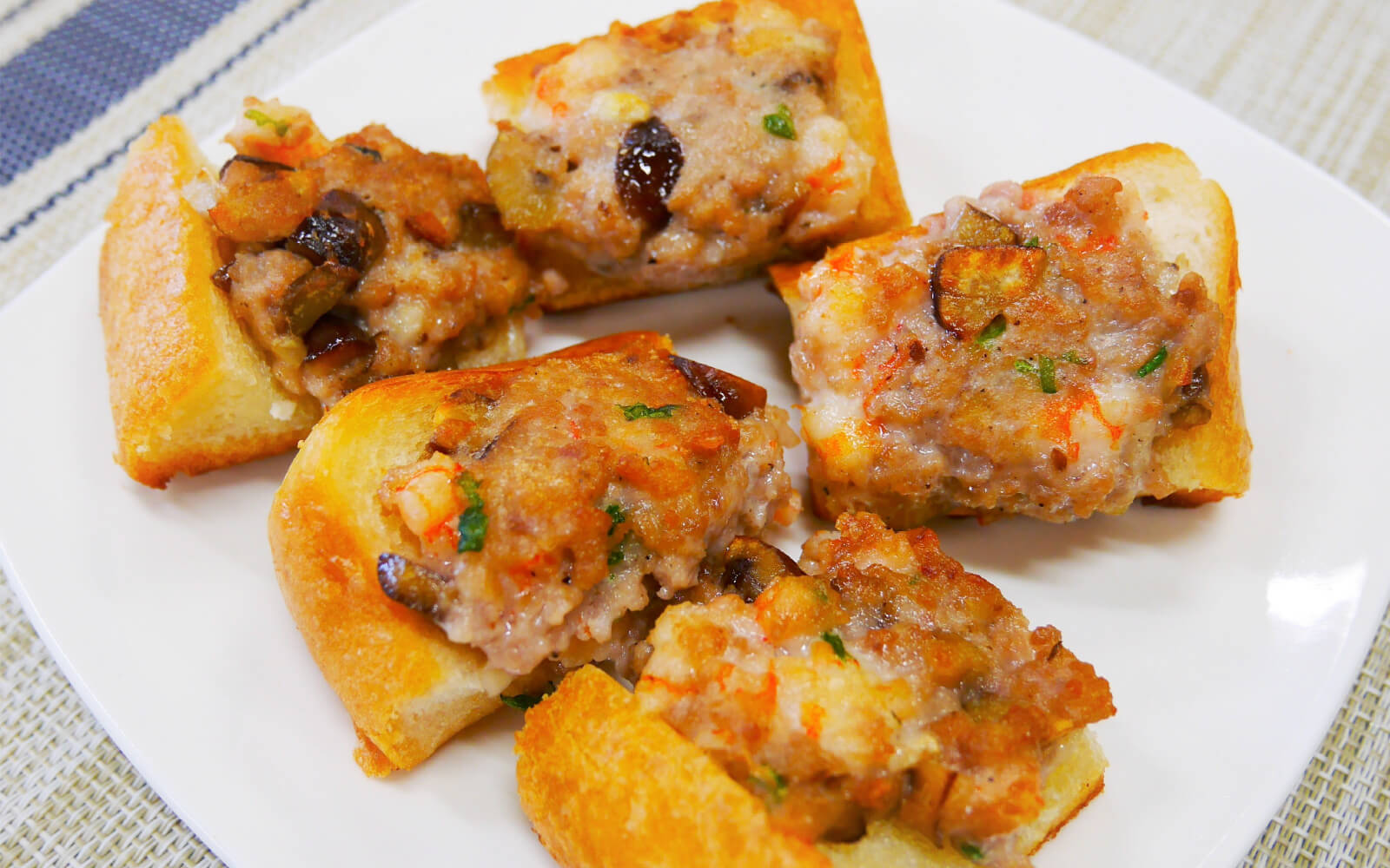 - ➍食パンの片面に③を広げて塗り、4〜6等分に切り分ける。