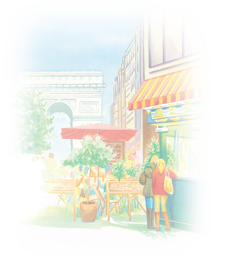 「凱旋門がそびえ立つ、パリのシャンゼリゼ通り」にイラストを一新しました。