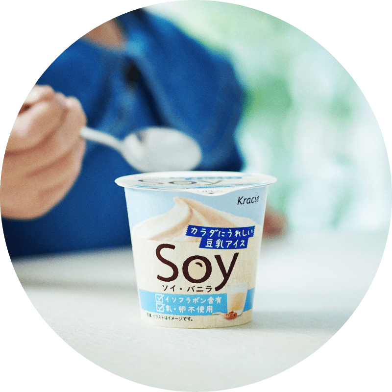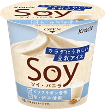 豆乳を使用したバニラアイスです。豆乳独特のクセを抑え、