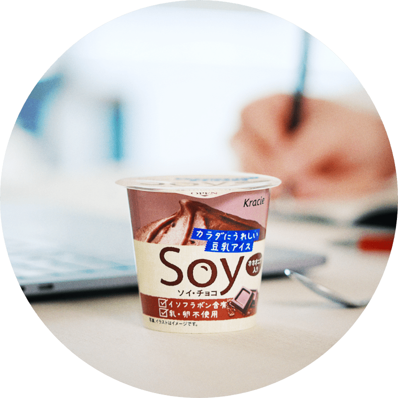 豆乳を使用したチョコアイスです。お子さまが楽しみやすいようにミルクチョコ をイメージした味わいに仕上げました。