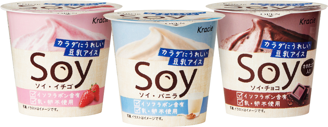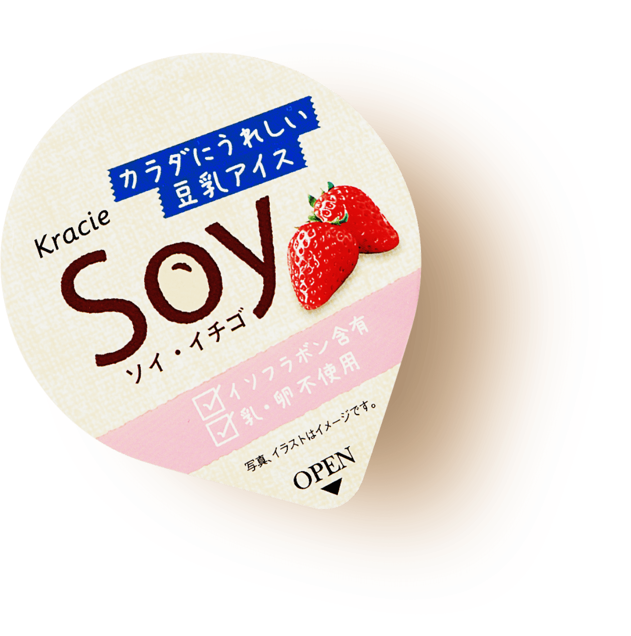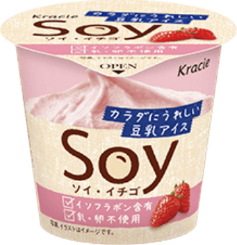 原材料:豆乳(国内製造)、水あめ、いちご果汁、果糖ぶどう糖液糖、砂糖、植物油脂、食塩/乳化剤、香料、着色料(紅麹)、安定剤(増粘多糖類)、酸味料、(一部に大豆を含む)