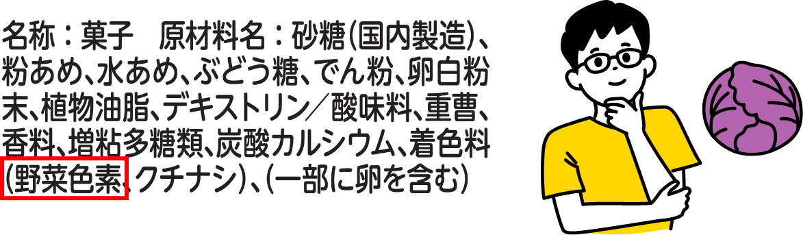例えば「ねるねるねるね ぶどう味」は紫キャベツの色の成分が性質によって変化する仕組みを利用しています。詳しくはこちらをご参照ください。