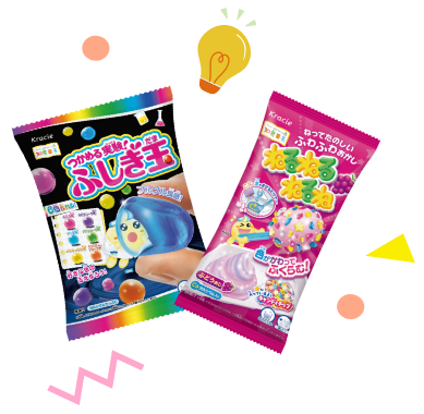 楽しく学べる知育菓子®!「色が変わる」「形が変わる」「本物そっくり」など、いろいろな発見がたくさん!どれが届くかは当日までのお楽しみ♪