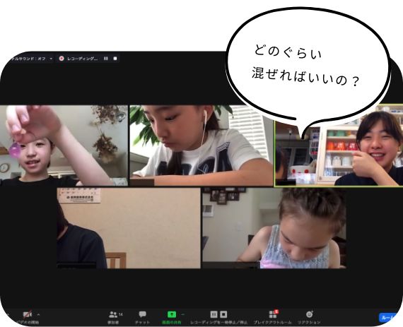 グループに分かれて、各自「つかめる実験!ふしぎ玉」を作ります。作っている様子を見せ合ったり、感想を伝え合いながら楽しく作ります。