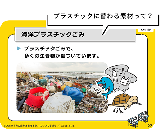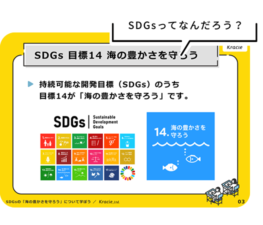 スライドや動画でSDGsの「海の豊かさを守ろう」について学習します。