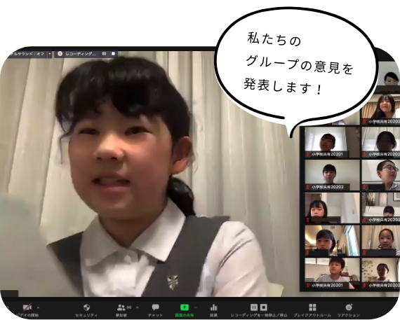 プラスチックごみ削減のための取り組みを学び、「海の豊かさを守ろう」という目標達成のため、自分にできることは何か、グループに分かれて15分間の意見交換。グループリーダーは意見をまとめ、全員の前で意見を発表します。