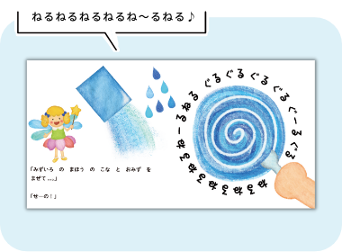 妖精さんから教えてもらった、魔法の粉とお水(ねるねるねるね)を使って、動物さんたちを助けるためにぶどうと雲を作ります。まぜる時には、「ねるねるねるねるね~るねる♪」とリズミカルに歌いましょう。そして、ぶどうと雲をパクっと食べてみましょう。雲はどんな味がするでしょうか?