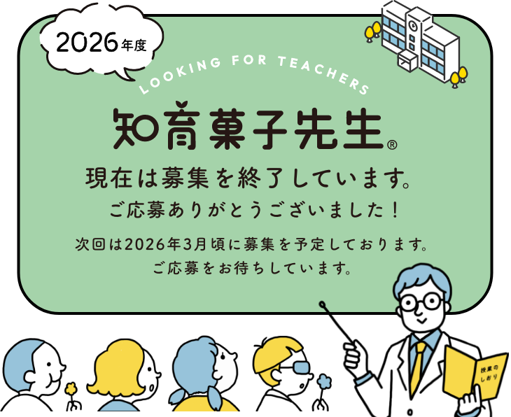 採択された方の中から、さらに優れた授業を実践された方を「知育菓子先生®」に認定いたします。認定された方は、このWEBサイト内で発表いたします。