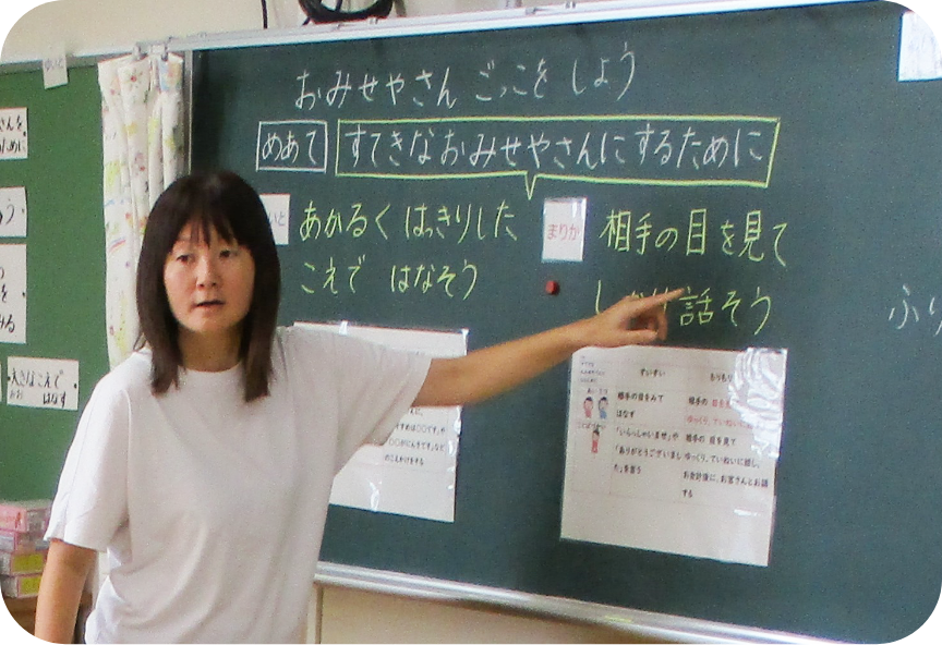 コミュニケーションの方法や他者との関わり方を、自立活動の中で「お店屋さんごっこをしよう」という学習活動を通して身につけさせていきます。「お店屋さん」を成功させるための「めあて」を達成するための課題や目標を自己選択して取り組ませることで、「自分でできた」という達成感や楽しさを感じることができるようにしていきます。さらに、知育菓子®を使って、造形物ではなく、実物に近い食材を自分で作って販売する過程を体験させることで、学習内容への関心や意欲が高まり、自己選択した課題や目標にも進んで取り組むことができます。また、中学校においてもキャリア教育などで活用することができます。