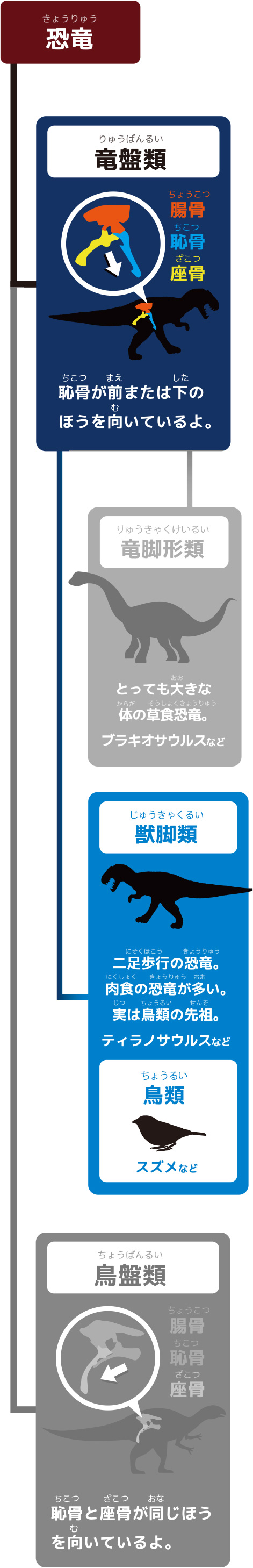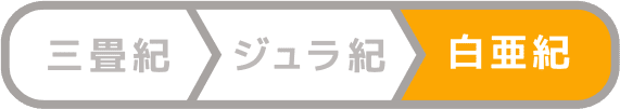 ティラノサウルス 目(め) 鼻(はな) 歯(は) 前(まえ)足(あし) 後(うし)ろ足(あし) 生(い)きていた時(じ)代(だい):白(はく)亜(あ)紀(き)後(こう)期(き) 種(しゅ)類(るい):竜盤類(りゅうばんるい)/獣脚類(じゅうきゃくるい) くわしくみる 体(からだ)の大(おお)きさ:全(ぜん)長(ちょう)13m以(い)上(じょう)、高(たか)さ6m/体重(たいじゅう)7t 食(た)べていたもの:肉食(にくしょく) 小林先生のかいせつ 小(こ)林(ばやし) 快(よし)次(つぐ) 先(せん)生(せい) ティラノサウルスは鋭(するど)い歯(は)と強(つよ)いあごを持(も)っているよ。 歯(は)は骨(ほね)も貫(つらぬ)いてしまうくらい鋭(するど)く頑丈(がんじょう)なんだ。 硬(かた)い骨(ほね)を食(た)べていたら、歯(は)が折(お)れてしまわないか心(しん)配(ぱい)だよね。でも大(だい)丈(じょう)夫(ぶ)!歯(は)が折(お)れたら新(あたら)しい歯(は)がまた生(は)えてきてくれるんだ。 ティラノサウルスの仲(なか)間(ま)の鋭(するど)い歯(は) ティラノサウルスの走(はし)るスピードは時(じ)速(そく)18kmくらいといわれていて、50m走(そう)だと10秒(びょう)くらいなんだ。もしティラノサウルスと遭(そう)遇(ぐう)しても逃(に)げられそうだよね。でもこどものティラノサウルスはすばしっこくて走(はし)るのが速(はや)いからチームで狩(か)りをしていたかもしれないんだ。鼻(はな)もとってもいいから、隠(かく)れてもすぐに見(み)つかってしまうかも…。まさに、最強(さいきょう)の肉(にく)食(しょく)恐(きょう)竜(りゅう)だね!