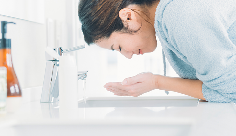 朝晩の洗顔はやさしく丁寧に。メイクをしている場合は、まずクレンジング料できちんと落とします。それから、洗顔料をよく泡立てて、“泡のクッション”で汚れを包み込みながらやさしく丁寧に洗顔しましょう。顔を拭くときもタオルはそっと押し当ててこすらないようにしてください。