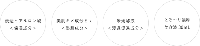 美肌キメ成分Ex<スターフルーツ(ゴレンシ果実エキス)、ハトムギエキス、ユズセラミド(ユズ果実エキス)、トウキンセンカ、グリセリン>