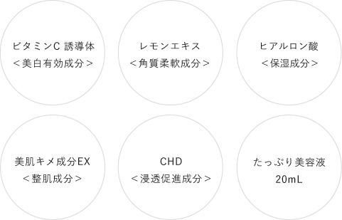 美肌キメ成分EX(リンゴエキス、ハトムギエキス(ヨクイニンエキス)、真珠エキス(水解コンキオリン液)、シャクヤクエキス)