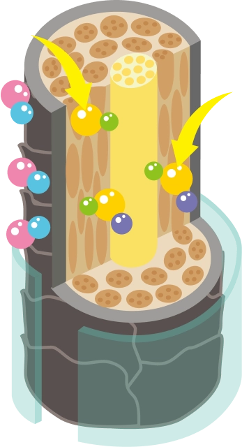 髪内部にうるおいをあたえ、外側のキューティクルのはがれをコート。髪のダメージを補修&保湿します。