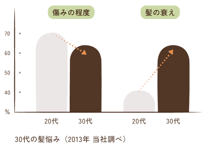 30代後半から、髪質の変化を感じる女性が多いようです。