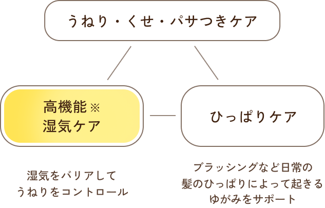 湿気や乾燥などに左右されないまとまる髪へ導きます。