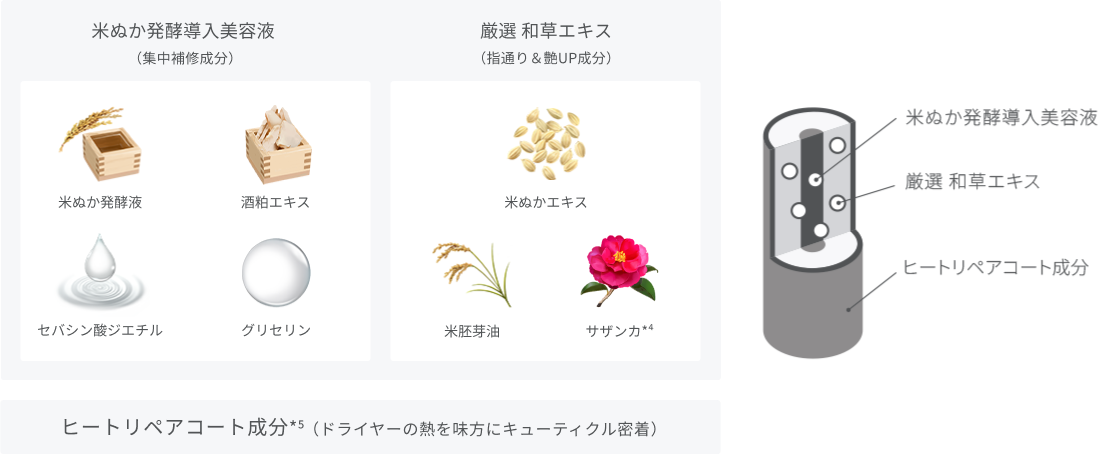 キューティクルへ浸透し、ドライヤーの熱を味方にキューティクルを密着