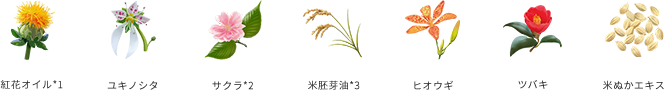 *1 サフラワー油 *2 サクラ葉エキス *3 厳選された米の研ぎ汁由来成分