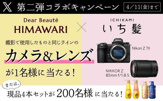 カメラ&レンズのセットを1名様、いち髪とディアボーテのシャンプー&コンディショナー現品4本セットを200名様にプレゼント!