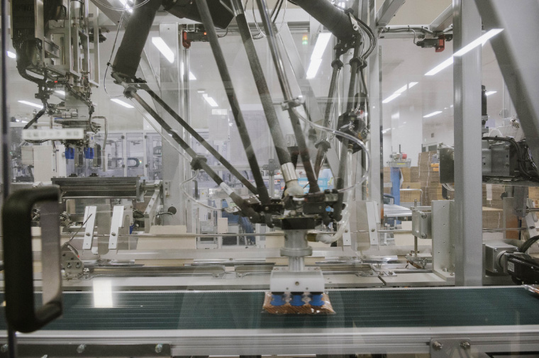 大量の資材を扱う高岡工場では、資材の取り違えが致命的なミスに繋がります。異物混入を避け、正しい資材を正しい場所で正しく使うために、コンピューターで管理された自動倉庫システムを導入。さらに搬入から最終製品となって出荷されるまでは常に一方通行の動線設計となっており、製造過程で混ざってしまったり人間が取り違えたりしないよう、仕組みと機械による制御が隅々まで行き届いています。