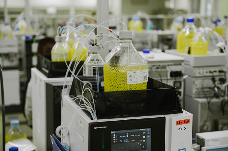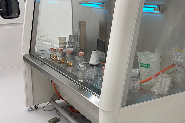 天然物だからこそ避けがたく微生物は混入しているので、その微生物が規定量内か、危険な微生物は居ないか、検査基準を自社で設定して確認しています。