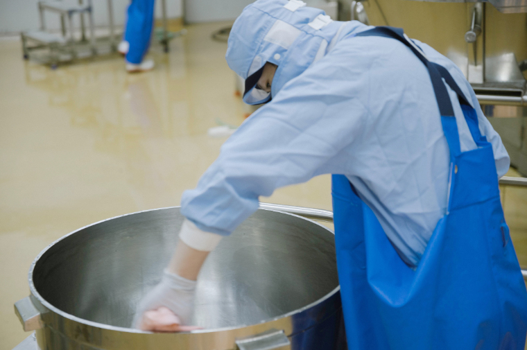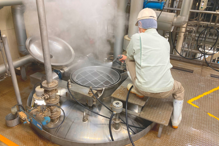 用途に合わせたたくさんの品種が存在する漢方薬。原薬を製造する高槻第二工場では約100種類の生薬を約60種類のエキス粉末に加工。高岡工場では約600種類の製品を製造しています。異なる品種の生薬やエキスの残留は異物混入や品質低下のリスクに繋がるため、設備の洗浄は日々の大切な業務。高槻第二工場では作業時間の1/3が洗浄の時間。人の手と機械を組み合わせた洗浄は、用途に合わせた数多くの品種が必要な漢方薬の製造現場の重要な工程です。