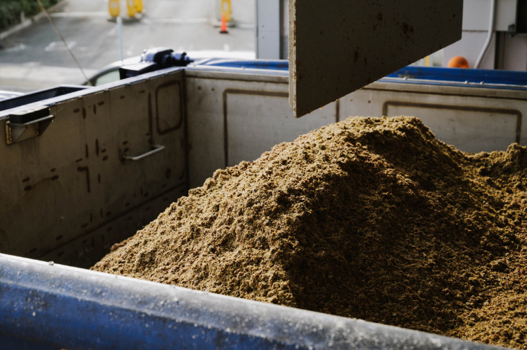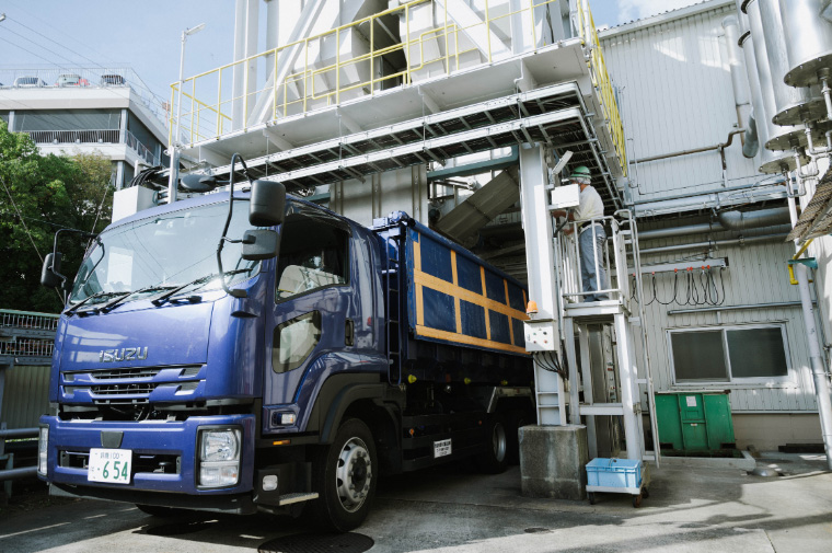 抽出工程で排出される生薬の残渣の量はなんと毎日10t以上! 残渣はコンポスト化し堆肥として有効活用しています。残渣は100%生薬から排出されたものなので、安全で栄養が豊富なため新たな活用法がないかと日々試行錯誤を重ねています。