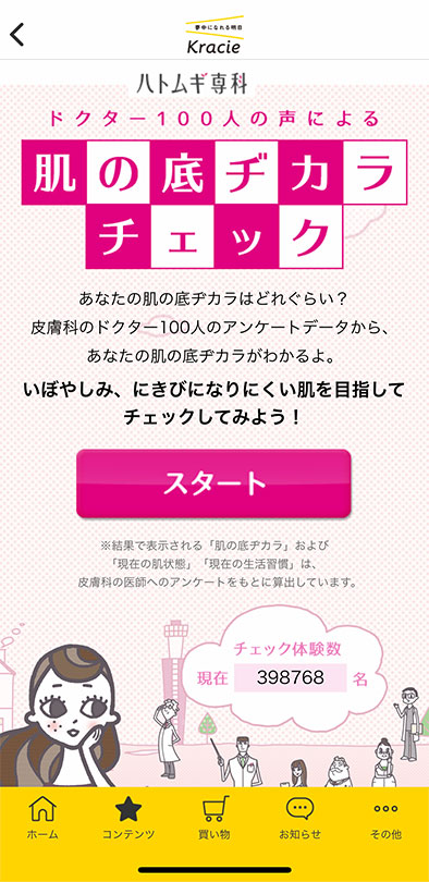 クラシエ薬品が提供する4つの診断コンテンツがアプリ上で体験できるようになりました。また、美と健康に役立つ最新情報も紹介します。