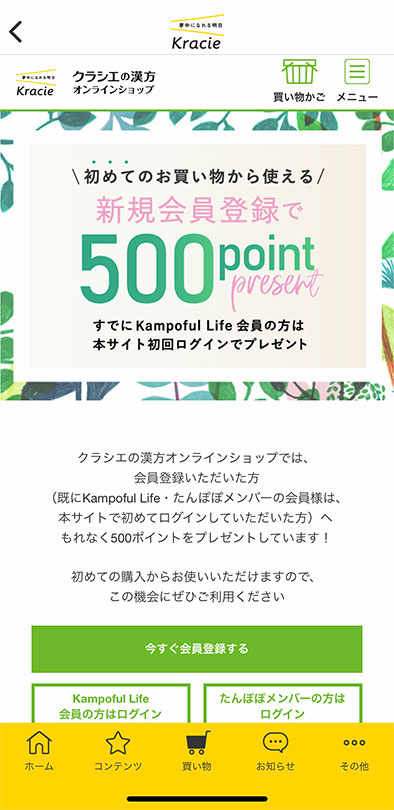 「Kampoful Life」から最新情報を提供いたします。また、カンポフル会員の方は、気になる商品をアプリ内で購入することができます。