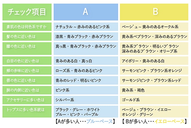 イエベ・ブルベとは?パーソナルカラーのイエベ(イエローベース)とブルベ(ブルーベース)