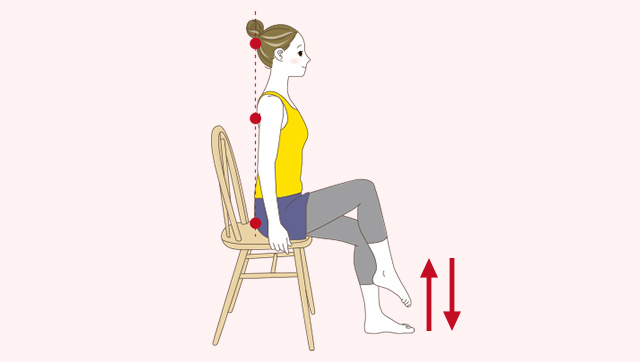 ② 骨盤の最下部の坐骨でしっかりと椅子の座面を押して背筋を伸ばします。