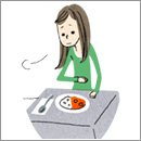 脂の多い食べものや食物繊維の多い食べものなどは、消化しにくく、胃腸の負担になりがちです。よく噛んで食べるだけでなく、小さく切る、やわらかく煮る、スープにするなど、調理法も工夫しながら、より消化の良い食事を心掛けていきましょう。また、胃腸と相談しながら、少量ずつこまめに食べるのも良いでしょう。