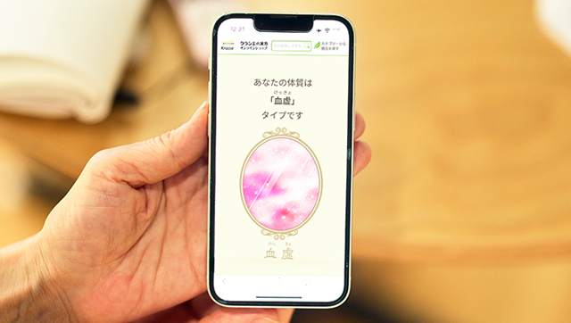 市川―この診断は、漢方で人の体を構成する要素とされる「気・血・水」から、体質を診るものなんです。それぞれが足りないか、滞っているかで、6つの体質に分けられます。安さんの「血虚(けっきょ)」は、わかりやすく言うと「血(けつ)」が足りないということですね。「血」は、西洋医学でいう血液だけではなく、血液に含まれる栄養素なども指し、少し幅広い意味を持ちます。お話を聞いていますと、安さんは血虚だけでなく、血が滞る「瘀血(おけつ)」の傾向もあるようです。血の過不足だけではなく、血が正常に流れているかどうかも大切な指標になります。