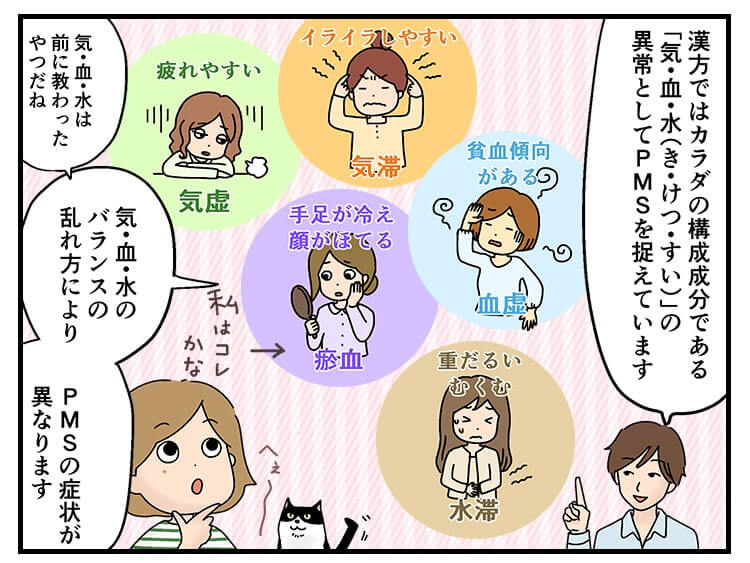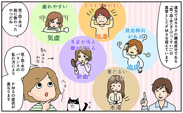 日本では月経のある女性のうち70~80%の人が、月経前に何らかの症状を抱えているそうです。その悩みには個人差がありますので、まずは自分の体質を知り、症状に合った漢方を選ぶことがPMSの軽減・改善への近道と言えます。