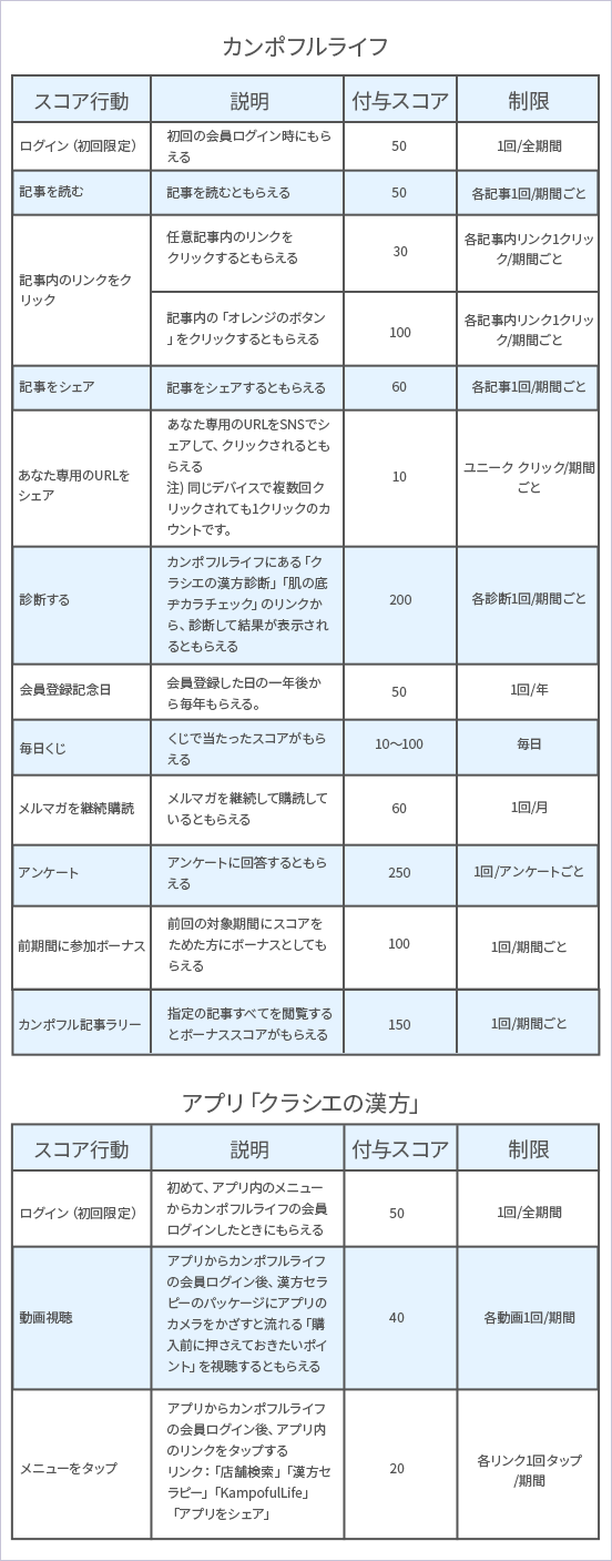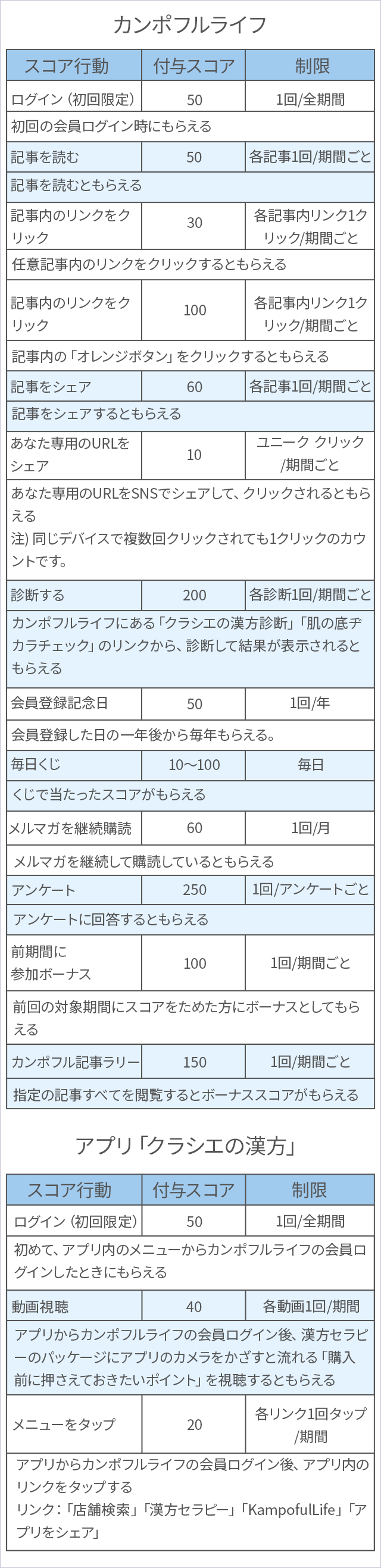 つまり、カンポフルライフで漢方の知恵を学びながら、アクションに応じたスコアを得られるのがカンポフルスコアです♪