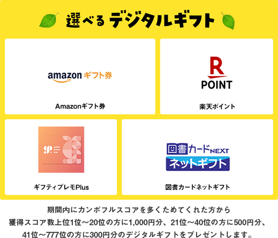 ・その他、カンポフルスコアをためる行為において、当社が不正と判断した場合、当該会員が保有するカンポフルスコア数がプレゼント対象となる規定を充たしていても無効とすることがあります。