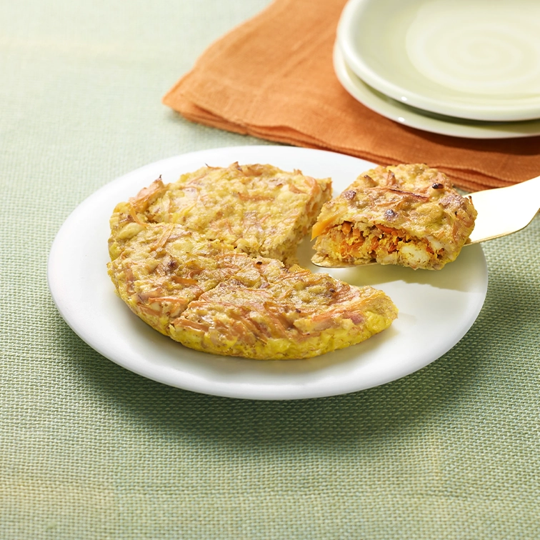 焼くボウルで卵を溶き、③を加えてよく混ぜる。耐熱容器よりひと回り大きいサイズのクッキングシートをくしゃくしゃに丸めてから広げ、耐熱容器に沿わせながら敷き、3を流し込む。オーブントースターで8~10分、焼き色がつくまで焼く。(焦げそうな場合は途中でアルミホイルをかぶせる)