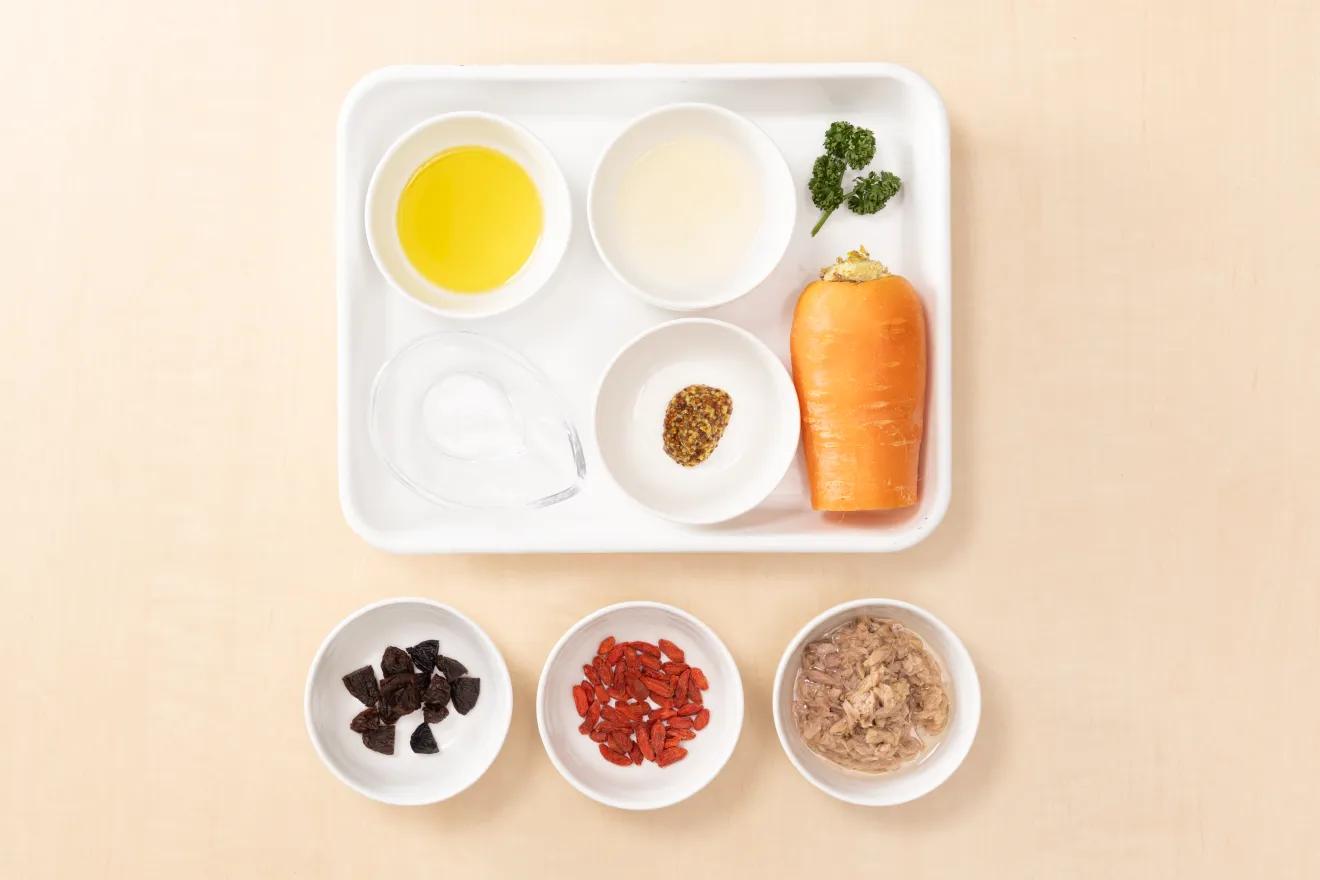 ボウルでAを混ぜ、そこに汁をきったツナ、レーズン、クコの実を入れてあえる。